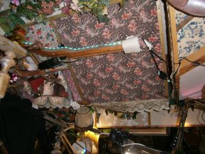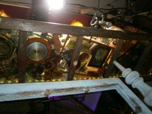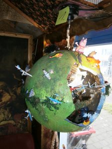 Position 1: Mobile, drehbar beleuchtet, ca 70 x 40 cm. Self made by Heile Welt. Inside-Outside Welt.