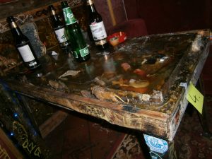 Position 4: Kneipentisch. Epoxy mit Lichteffekten und Tieren. Höhe ca 85 cm, Breite ca 56 cm, Länge ca 105 cm. Gewicht ca 70 kg. Beleuchtet.
