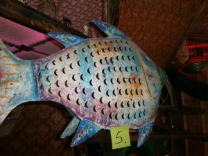 Position 5: Blechfisch, Bunt mit Seitentür, Drehbar gelagert, mit Drehmotor, Fischgrösse ca 80 x 50 cm.