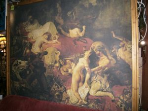 Position 11: Bild, Druck auf Stoff mit Rahmen, ca 185 x 156 cm. „Der Tod des Sardanapal“ E. Delacroix 1827.