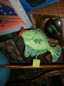 Position 37: Mobile "Grüner Fisch", Pappmaché mit Drehmotor ca 50 x 60 cm.